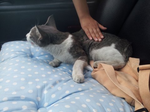 제가 잠시 멘붕인 사이 아저씨가 성큼성큼 오시더니 그 고양이를 낼름 집어 열린 제 차 유리창 너머로 쏘옥~ 녀석을 조수석에 내려 놓으시는 겁니다.