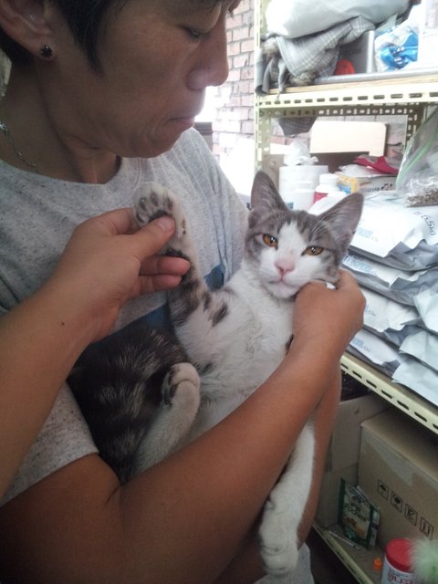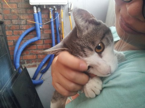 솔직히 저는 순간 망설였습니다. 내일이면 우리 화동이가 핍박받는 2개월의 임보생활을 청산하고 평생 집사님을 만나는 날인데 또다시 업동이?..화동이도 너무나 오래걸려 겨우 입양이 결정되었는데 또다시?? 엄마의 그 핍박은 또 어떻게 견딜까...하는 맘이 앞섰던 거죠.(저희 어머님은 정말 너무너무너무 털달린 동물을 싫어하십니다.) 하지만 선택의 여지가 없었습니다. 이녀석..제가 여기서 모른척 지나가면 앞으로의 삶이 어떨지 뻔하니까요. 그사이 근처 아주머니들도 몰려오시고...