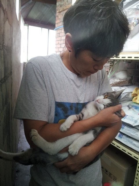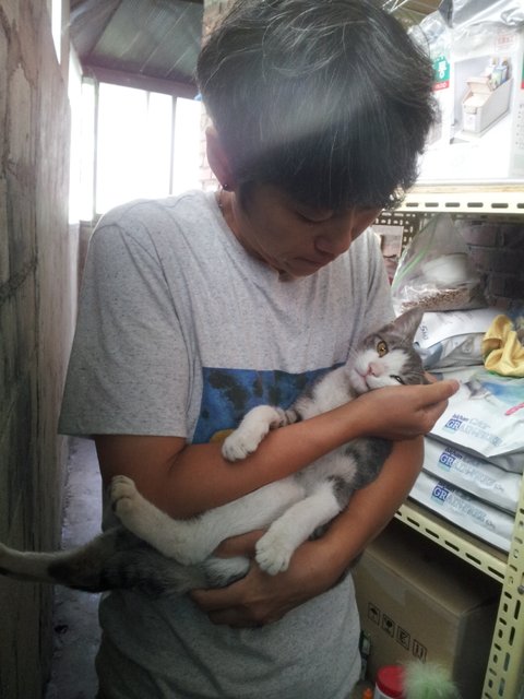 "몰라요. 그냥 여기 다니는 고양인데 제가 집에 가져가려구요."