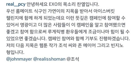 찬열 아이스버킷 좌표랑 캡쳐!ㅠㅠ