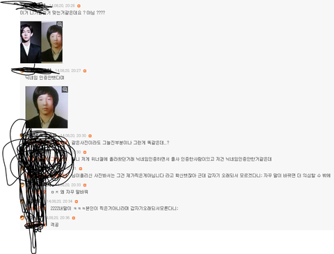 사람들이 글쓴이한테 같은사진이냐고물어봄