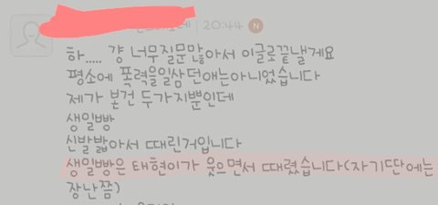 처음에 남태현 일진이라고 인증하고 썰풀었던 원글쓴이(거의 모든썰을 푼 사람)가 사실남자(성별속임)