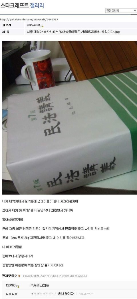 ㅋㅋㅋㅋㅋㅋㅋㅋㅋ법조항 일일히 따져들어가며 논리로 승부할줄 알았더니 책을 무기로삼고있엌ㄱㄲㅋㅋ