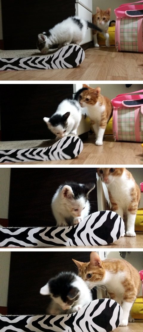 보리는 쌀이가 궁금해서 난리가 났어요.