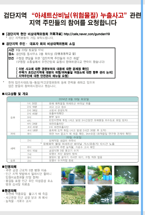 유해 가스 유출사고 꼭좀 알려주세요