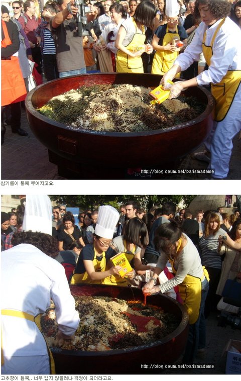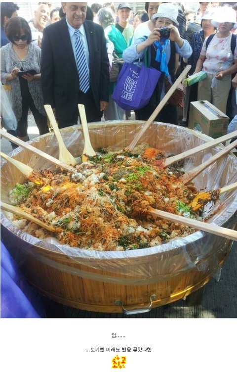 600인분 다 비비기도 힘드셨을텐데 홍보를 위해 힘써주신 아주머니들 감사드립니다.ㅠㅠ 외국인들 입맛에는 어색할지 몰라도 난 먹을것 없으면 고추장,밥,참기름 해서 뚝딱 비우는지라 저거 너무 먹고 싶다.ㅠ