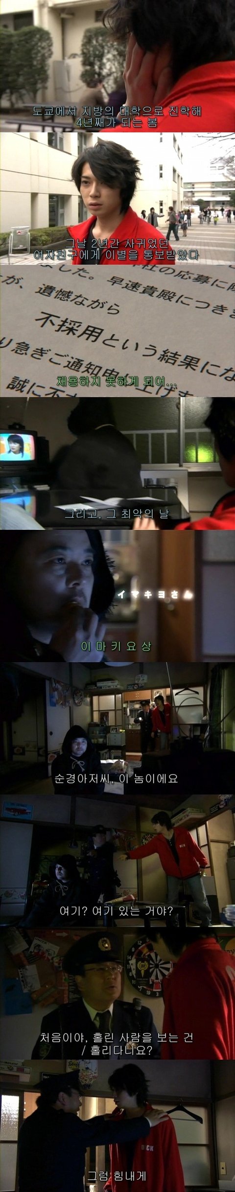 지방에서 살던 카즈오는 도시로 올라와서 학교를 다니며 취업을 준비하는 학생이라오