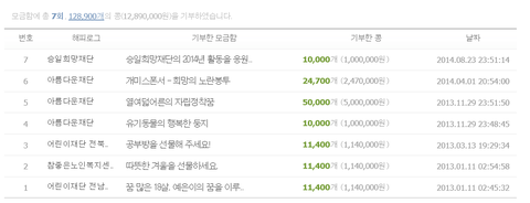 팬들이 열심히 모아서 승일 희망재단에 백만원 기부!