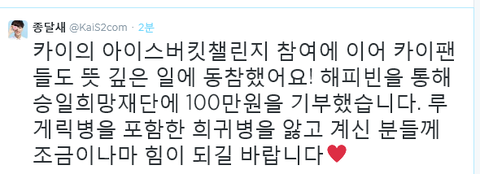 종인이가 참여하자마자 바로 좋은일에 동참ㅠㅠㅠㅠㅠ
