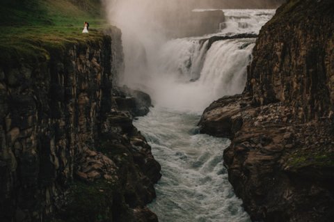 아이슬란드의 폭포 앞에서