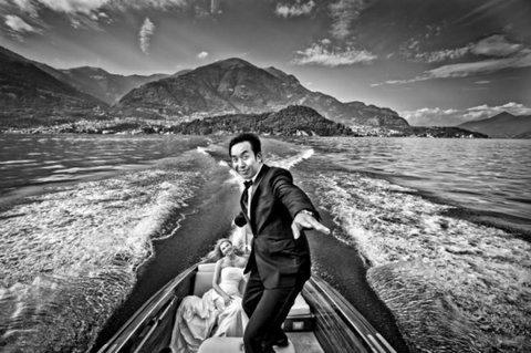 빠르게 달리는 고속정 위에서