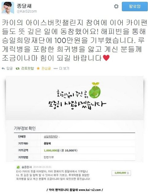 종인이도, 종인이의 뜻에 따라 기꺼이 뜻깊은 일에 함께하는 팬들도 다 정말 멋짐♥