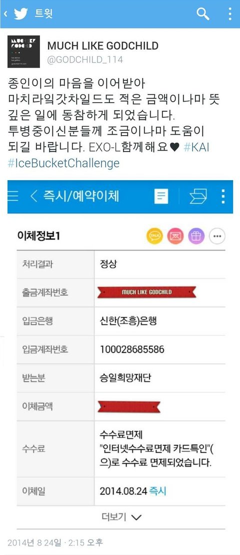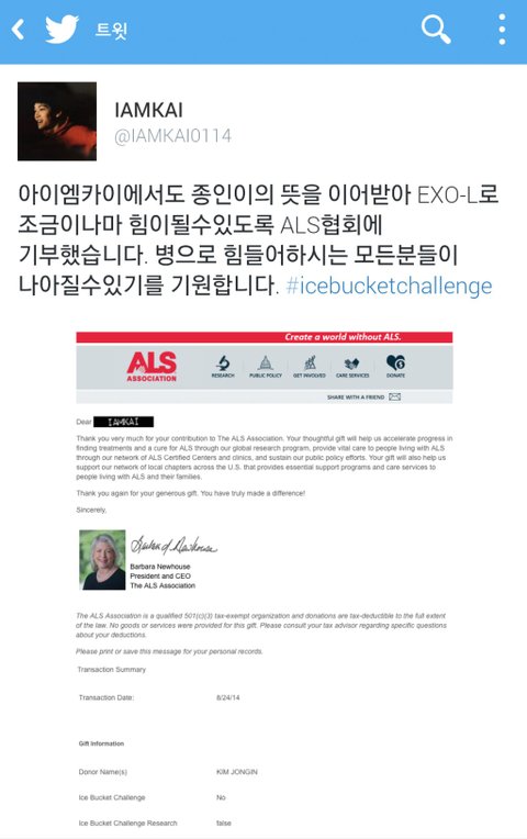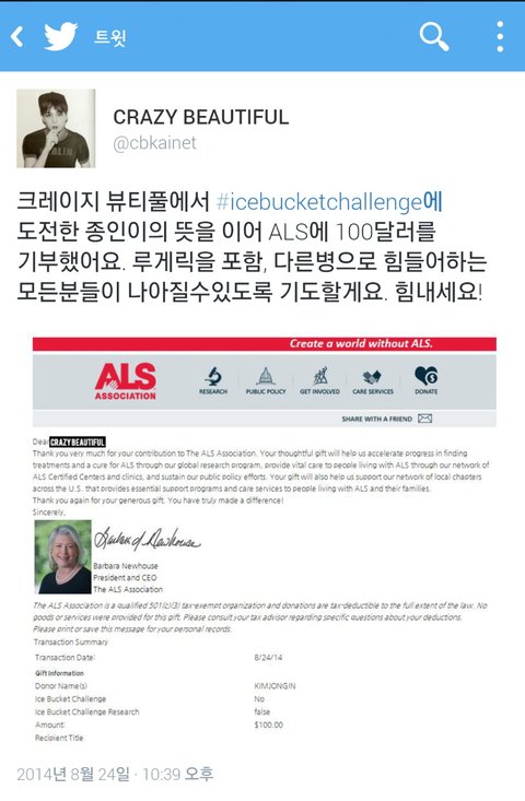 많은 팬들이 아이스버킷 챌린지 취지 이해하고 함께 참여해주길 바라는거 같았어!