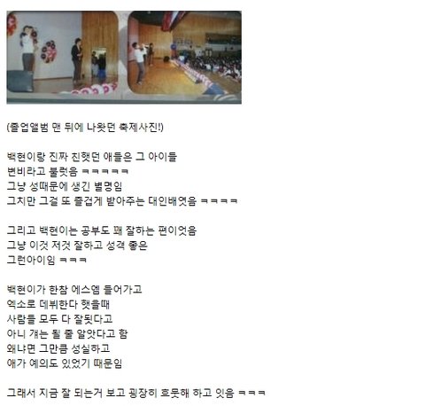 '백현이는 공부도 꽤 잘하는 편이었음.  그냥 이것저것 잘하고 성격좋은 그런 아이'