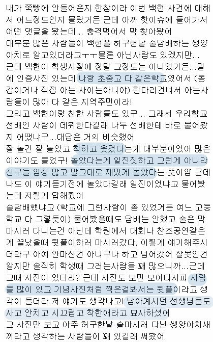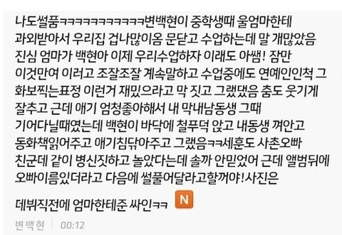 제가 동창들이 변백현이 금품갈취 폭행을 일삼고~ 뭐 이랬다면