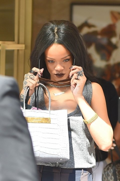 리한나만이 소화가능한 바지를입고 포스터지게 차에서 내림
