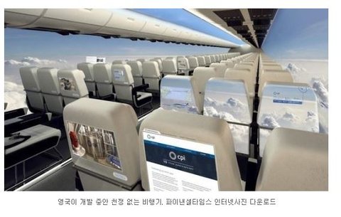 영국이 각종 영상을 재생할 수 있는 플라스틱 디스플레이를 창문 대신 설치하는 항공기를 개발 중이라고 파이낸셜타임스가 26일 보도했다. 항공기 객실 내벽 전체를 유리창 대신 거대 플라스틱 디스플레이로 교체해 연료소비를 줄이고 비행 중 상공의 풍경을 객실에 그대로 전달해 탑승객들의 답답함도 해소해줄 수 있다는 것이다.