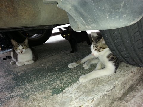 한 두달전 길을 걷다 우연히 저희집 골목에서 길냥이를 만났습니다...전 그 냥이를 보구선 혹시 배고플까 싶어 얼른 집으로 뛰어가 저희집 아가들이 먹는 간식을 가져와 먹기 좋게 일일이 찢어 앞에 놓아주었습니다... 그런데 길냥이라 배고플텐데두 얼마 먹지않구 냥이가 사라진겁니다... 전 혹시나 싶어 이곳저곳 냥이를 부르며 찾으러다녔구 그러다 저희집 다음 골목에서 아기냥이들 3마리를 발견했습니다... 이 아가냥이들은 제가 준 간식을 맛나게 다 먹어주었꿍 그게 너무 이뻐서 다음날부터 매일 사료와 간식,물을 주러 저는 그 골목을 찾아가게 되었습니다... 그러면서 알게된건 3마리가 아닌 삼색 어미냥 한 마리와 어미냥을 쏙 빼닮은 삼색 아가냥 두마리 그리구 아빠를 닮은건지 올블랙 아가냥 3마리!!! 이렇게 총 6마리 냥이들의 먹을것을 저는 챙겨주게 된것입니다... 매일매일 이쁜 아가덜에게 맛난걸 먹일수 있다는 행복감에 전 하루하루가 기다려졌습니다... 집에서 키우는 우리 찐빵&호빵 에게는 신경을 덜 써줘서 미안했지만 그 아가덜은 길에서 힘들게 살구 있는걸 알기에 더 신경이 쓰였거든여... 그렇게 그 골목에 들어서서 쭈쭈쭈쭈 소리를 내며 아가덜을 부르면 그 소리를 듣구서 냐옹냐옹 하며 나타나는 아가덜이 너무너무 이쁘구 사랑스러웠습니다....이 아가덜이예염...