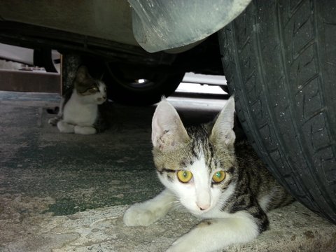 그러다 제 휴가때는 이 아가덜을 더 챙겨주구 싶은 맘에 휴가동안 아침저녁으로 아가덜을 만나러 갔는데 그 날따라 어미냥두 까칠하게 하악질을 하궁 삼색 아가냥 한마리두 계속 울어대길래 주위를 둘러보니 6마리중 저를 보면 발라당 두러누워 애교를 부리던 삼색 아가냥이 기운없이 차 밑에 앉아있는 거였습니다... 원래 그 아가냥은 간식만 주면 젤 먼저 다가와 맛나게 먹던 아이였기에 전 걱정이되어 그 아이를 차 밑에서 꺼냈구 (얼마나 기운이 없던지 도망두 안가구 기냥 제 손에 끌려 나오더라구여ㅠ.ㅜ) 울음소리두 원래 울던 냐옹냐옹이 아닌 허스키한 낮은 울음소리라 전 걱정이 되어 저희집으로 데리고와 이동장에 넣어 저희 아가덜이 다니는 동물병원으로 데리고 갔습니다... 다행히 원장님께서 아가를 보시고는 아랫턱을 어딘가에 부딪쳐서 아랫이빨 한개가 살짝 흔들리구 잇몸이 쪼끔 부어서 먹이를 못 먹어 기운이 없는거 같다하여 캔을 원장님께서 먹여주시구 진통제를 맞구 다시 동네로 데려와 친구덜이 있는 골목에 놓아줬습니다... 그리구 다음날 너무 걱정이되어 일찍 골목으로 나가보니 그 날은 더 기운없는 소리로 울며 차 밑에 있는 것이였습니다... 전 이 아이가 늘 삼색냥 아가와 붙어있어 저희집으로 데려와 키우면 우울해 할까봐 어제 놓아준 거였는데 이렇게 아픈 아이를 길에 방치하면 안되겠다 싶어 제가 셋째로 들일 생각까지하며 병원으로 급히 데리고 갔는데 전 거기서 청천벽력 같은 소리를 듣고야 말았습니다... 혹시나해서 원장님께서 범백 검사를 하셨는데 범백 바이러스에 감염되서 살 확률이 20%도 안된다는 말씀.....전 저에게 똥꼬발랄하게 애교를 부려 유난히 정이갔던 이 아이를 어떻게 하는게 좋은건지 정말 막막했습니다...셋째로 들일 생각까지 했으니까여...하염없이 제가 계속 울기만하니 원장님께서는 이 아이는 길에서 생활하던 아이구 기운이 너무 없어 치료를 한다해도 치료를 받다 죽을 확률이 크니 아이가 힘들지않게 안락사를 시키는게 이 아이한테두 좋을거 같다는 말씀을 하셨어여... 하지만 전 괜히 제가 병원까지 아기를 데리고와 이제 태어난지 3개월 정도 밖에 안돼서 더 살 수도 있는 아이를 제 선택으로 무지개 다리를 건너게 해야 한다는게 너무 힘들어 쉽게 결정하지 못했어여... 그런데 선생님이 이 아이 이렇게 병원 데려오지 않았다면 길에서 죽었을수도 있었다구 하시니..... 그래서..... 전 그 똥꼬발랄했던 이쁜 그 아이 제 선택으로 무지개 다리 건너게 해줬습니다...