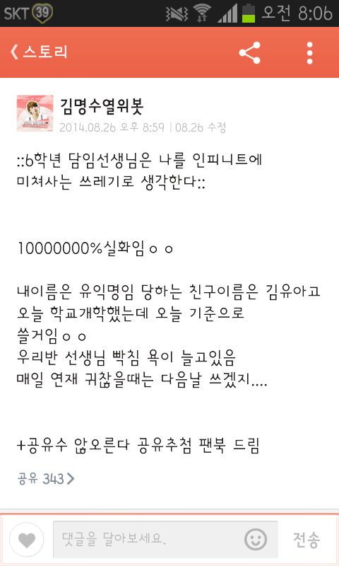 가끔씩 올라오는썰중에 이런썰은 처음봐서올림ㅋㅋㅋㅋㅋ 선생년ㅋㅋㅋㅋㅋㄱㅂㅂㅋㅋ나중에이불뻥뻥찰듯..노답