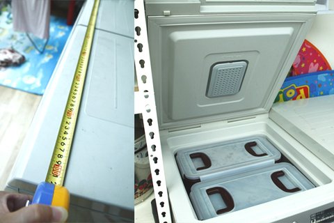 2. 오래된 김치냉장고 커버를 고이 접어두고 김치냉장고의 치수를 재어줍니다.