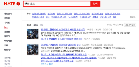 내가 방금전 인피니트를 뉴스 결과로 검색했는데