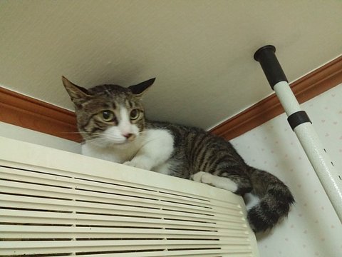 물론 엄청난 경계로 .... 제일 높은 에어컨 꼭대기까지 올라 갔지만 ..