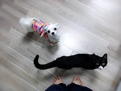 아침에 눈 뜨자마자 두 마리가 절 졸졸졸 따라 다니는데 ..