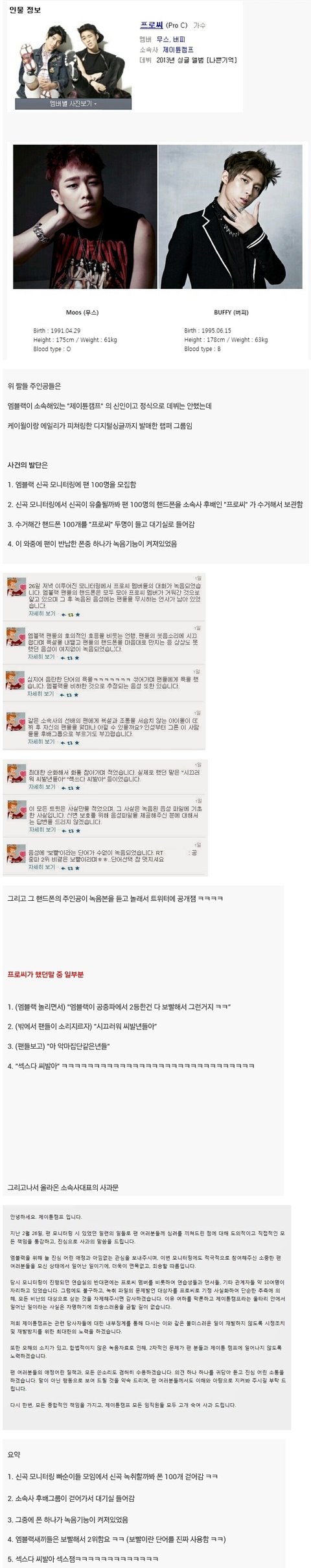 소속사 선배에게 “보빨” 한다고 망언한 그룹