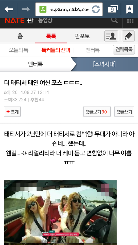 그것도 소녀시대톡에서 글쓴건댘ㅋㅋㅋㅋㅋ