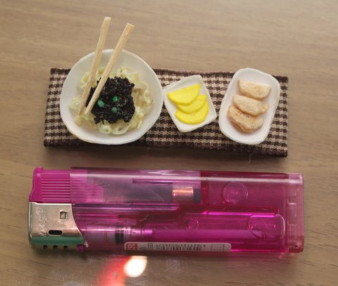 7cm 똑딱핀위에 차려진 짜장면과 단무지.. 글고 군만두 한상 입니다. ㅋ