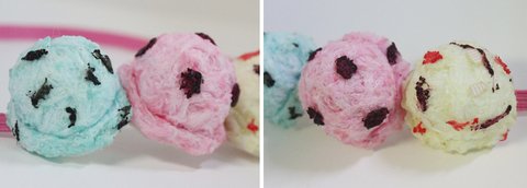 시금치는 초록색 골지리본 올 풀어 열처리로 작업했어요 ^^.