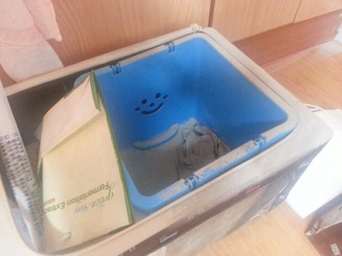 파란통이 빨래통인데 빨랫감이 원래 무슨색인지 구분이 안갈정도로 돌가루들이 쌓여있음