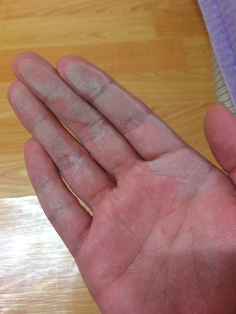 눈에 잘 보이지 않아 바닥을 살짝 손으로 훔쳐봤습니다 역시나 회색돌가루들로 가득하더군요...
