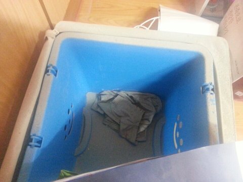 파란통이 빨래통인데 빨랫감이 원래 무슨색인지 구분이 안갈정도로 돌가루들이 쌓여있음
