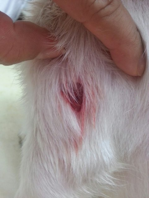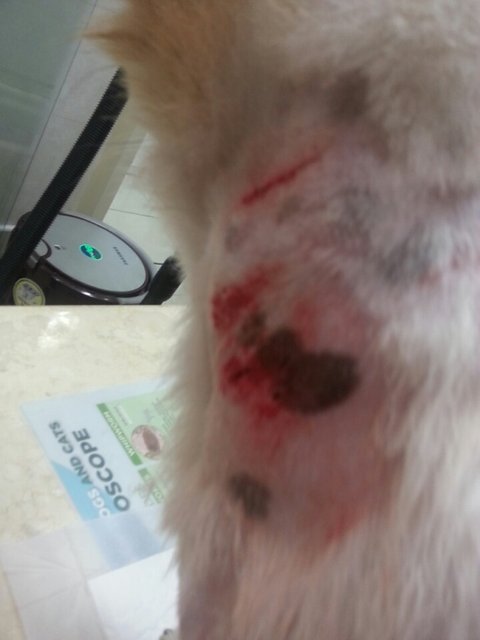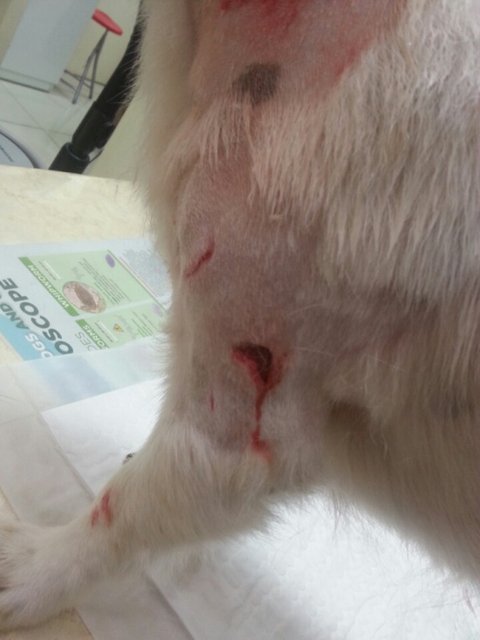 상처부위가 너무 심각합니다.. 개 이빨자국 다 있고.. 살은 찢기고 찢겨서 속살이 너덜너덜~ ㅜㅜ