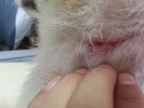 목덜미랑 다리는 심하게 찢어져서 피가 뚝뚝흐르고...