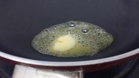 약한 불에 프라이팬을 데운 후 마가린 버터 반스푼 올리고 어느정도 녹았다 싶을때
