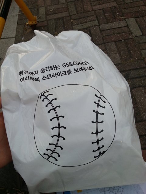 공연전에 나눠준 야구모양 봉투에 쓰레기를 담고
