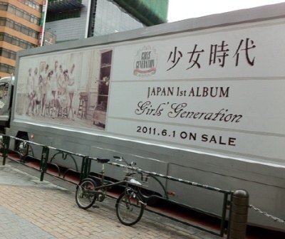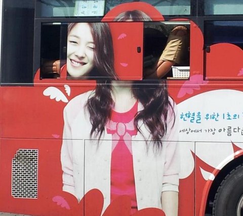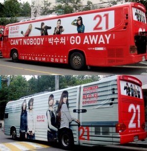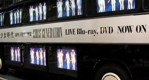버스 옆에 모니터에서 소녀시대의 영상이나옴.
