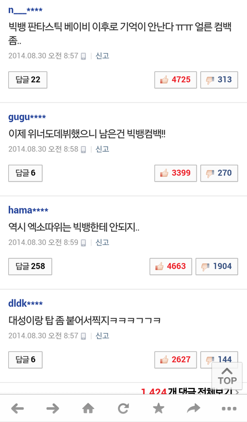 열폭도 가지가지 존뜬끔 엑소가 왜 나와ㅋㅋㅋ어휴 ㅉㅉ저래놓고 엑퀴 ㅇㅈㄹ 답글이 더 가관;;
