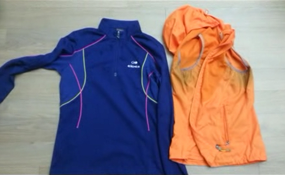 등산 후 탈의 하면서 조끼 겨드랑이에 남색 물이 든 것을 발견함.