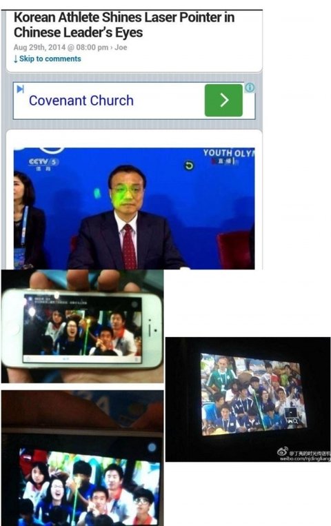 태극기 달고 얼굴에 레이저를 쐈는데 그냥 레이저 포인트도 아니고