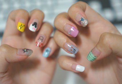 이때는 스티커에 한동안 빠져서 스티커 네일만 했었어요 ㅋㅋ 프렌치도 걍 대충그려서 약간 삐뚤