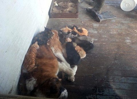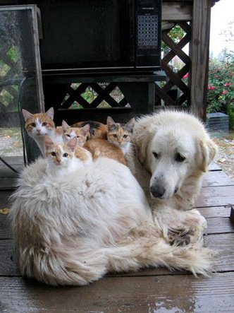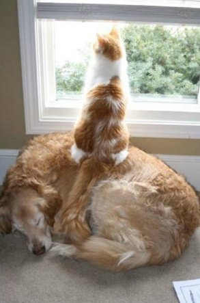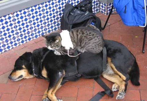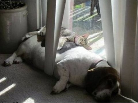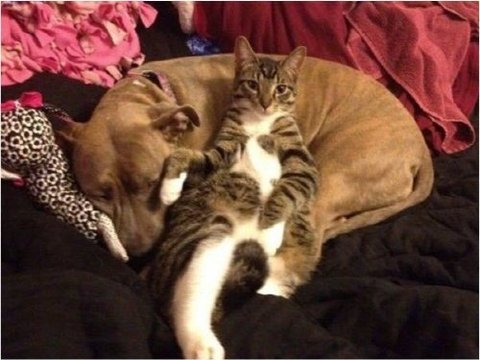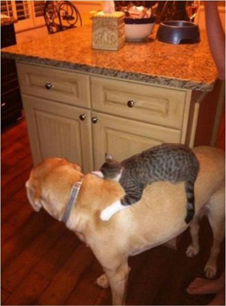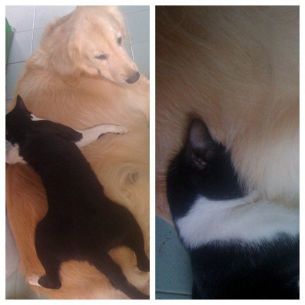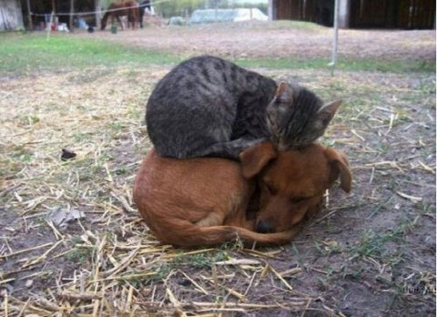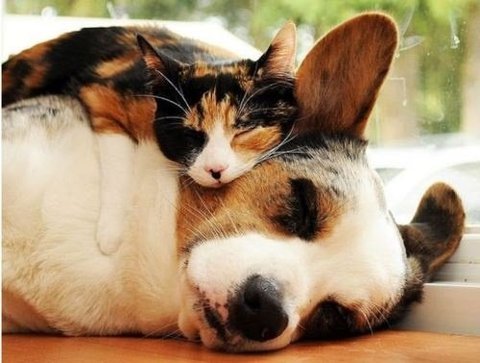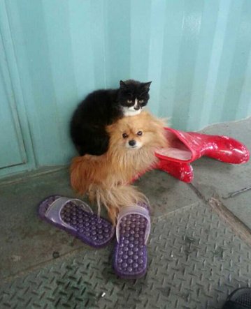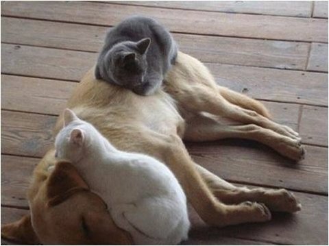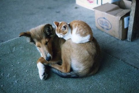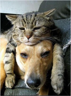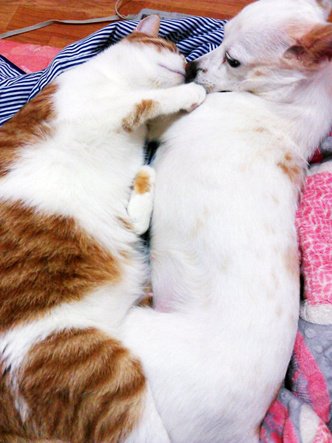 사이 좋게 지내는 개와 고양이