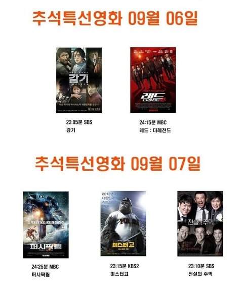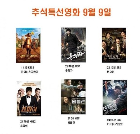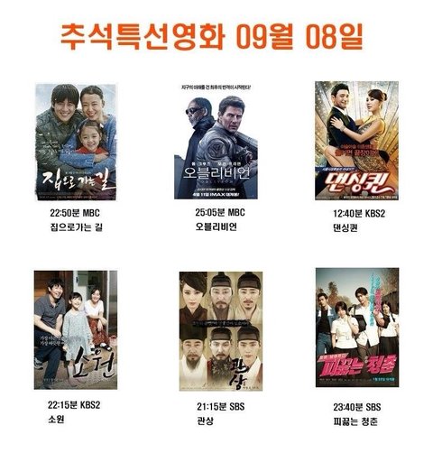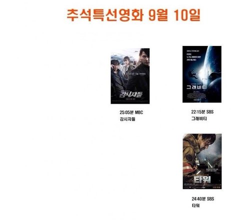 추석때 티비 영화 상영표