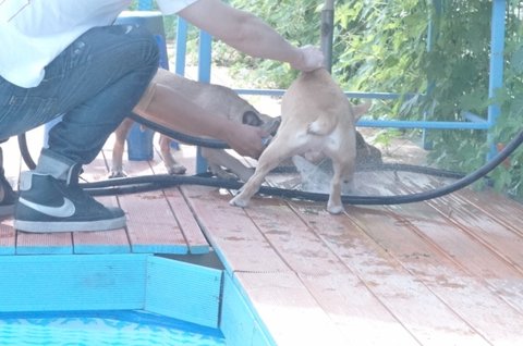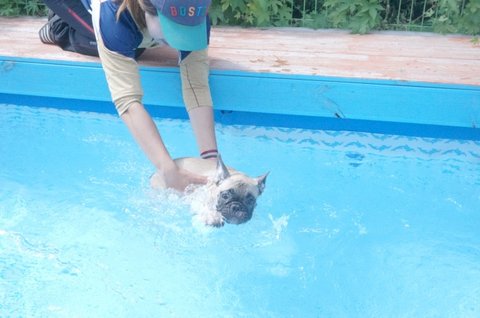 수영하기 전에 강아지들도 먼저 발부터 차가운 물로 적셔주기.