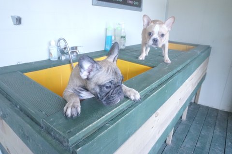 씻기려고 목욕통에 넣어놨더니