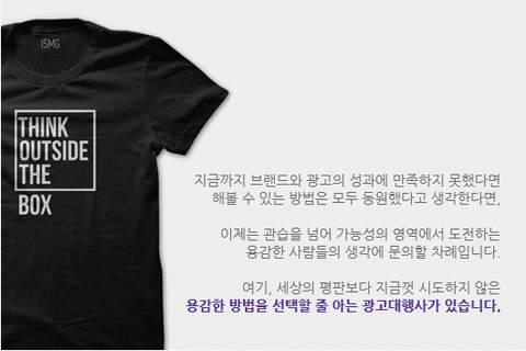 슬로건 OUT-THINK에 담긴 황두연 대표(ISMG 코리아)의 철학은?!두가지 생각이 있다면 항상 세 번째 생각을 따르라- 황두연 대표(ISMG 코리아) 광고철학-