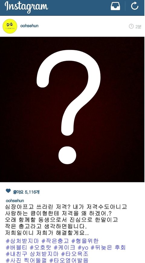 세훈이 인스타 업뎃했는데 백현저격아님..??